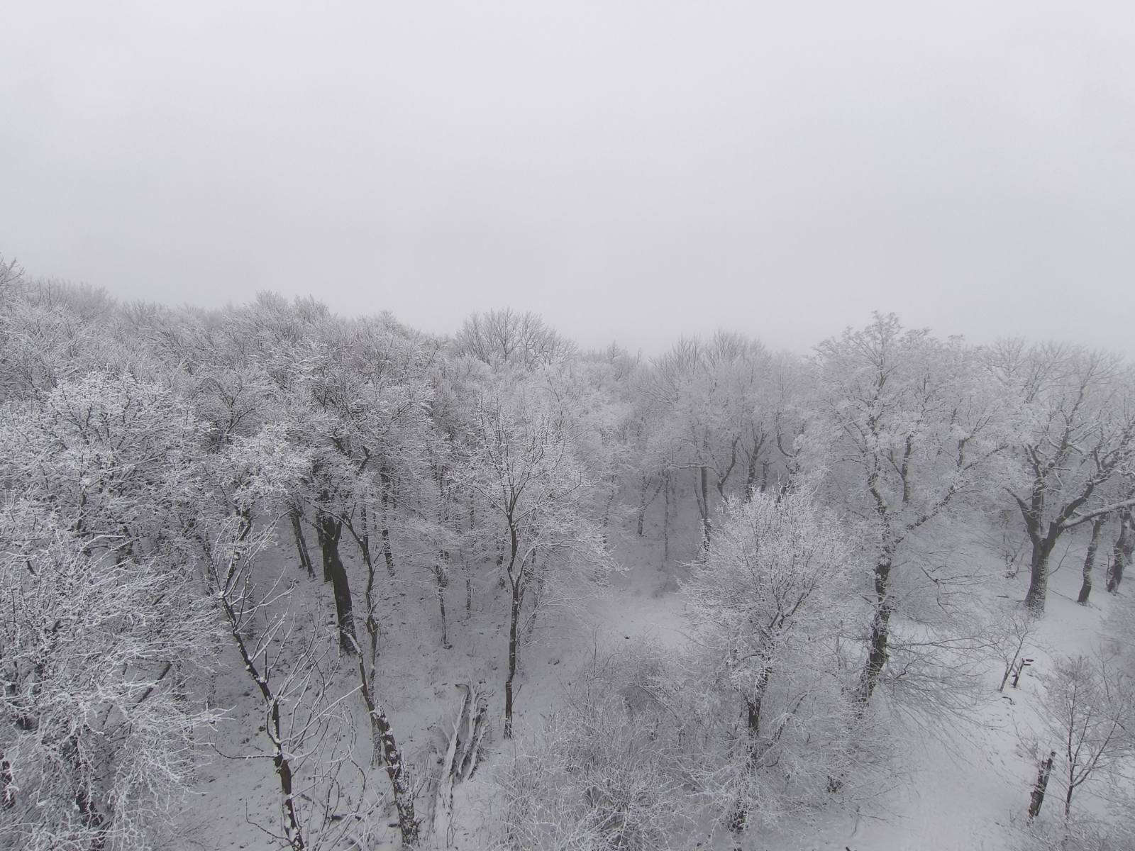 A hó gyönyörűvé tette az erdőt. A vizes, tapadós, néhol jeges hóban való haladást nagyban könnyítette a hómacska, így a legtöbb résztvevő még a függőhíd előtt féltette. Páran még kitartottak egy darabig, de az emelkedő kezdete után nem sokkal akinek volt, ugyancsak feltette a csúszásgátlót, ami nagy segítségnek bizonyult.